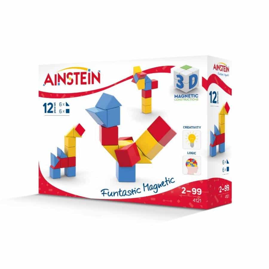Einzigartige Magnetbausteine zur Verwirklichung der kreativsten Ideen! Alles ist möglich in der genialen Welt von AINSTEIN! Neben freiem Spielen können auch Muster, geometrische Formen und 3-dimensionale Konstruktionen nachgebaut werden. Dabei werden spielerisch Fähigkeiten wie Motorik, Logik, räumliches Denken sowie Farb-und Formwahrnehmung weiterentwickelt!
