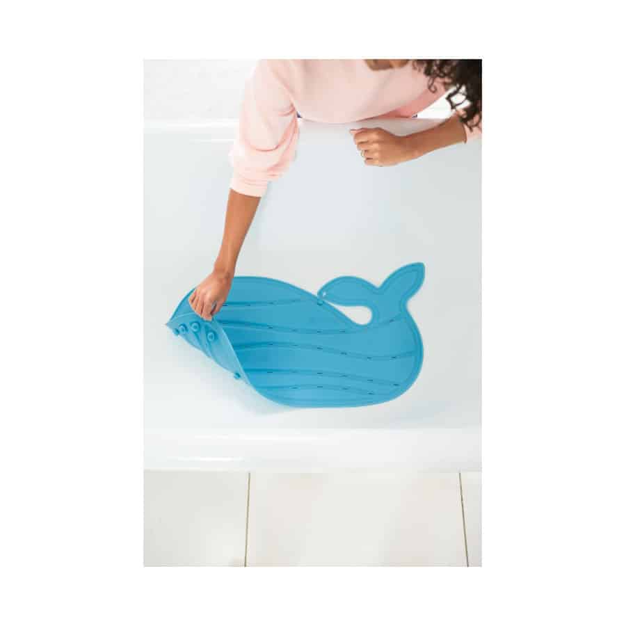 Unsere moby-badematte wurde unter Berücksichtigung des Komforts entwickelt und bietet eine strukturierte, rutschfeste Oberfläche für das Bad Ihres Kindes. Unsere charakteristische walform mit ganzflächig verteilten Saugnäpfen, die sich an der glatten Oberfläche ihrer Wanne festsaugen, macht nicht nur Spaß, sondern ist auch praktisch. Perforationen für den Wasserabfluss ermöglichen zudem ein schnelles Trocknen und helfen, die Bildung von Schimmelpilzen zu reduzieren. Nach dem Baden kann die Matte dank der Schwanzflosse, die als praktischer Haken dient, problemlos am Duschkopf, an der duschstange oder am Handtuchhalter befestigt werden.