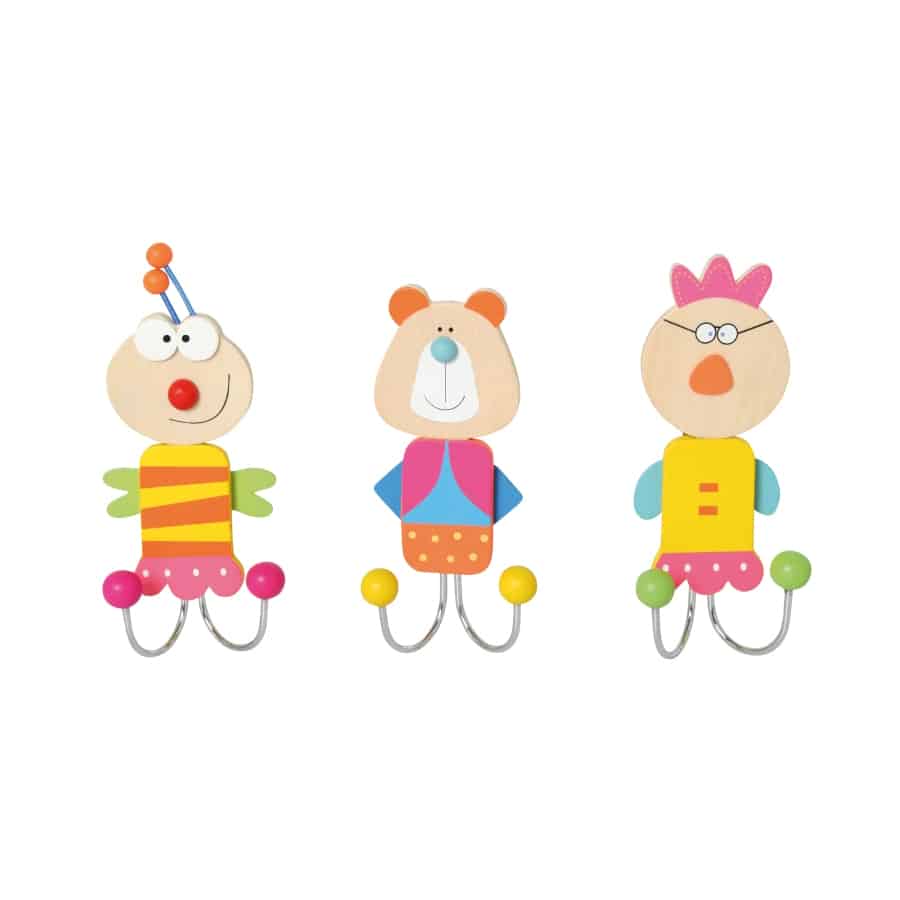 Aus Holz. Mit zwei Metallhaken. Sechs Motive sortiert. 1 Stück