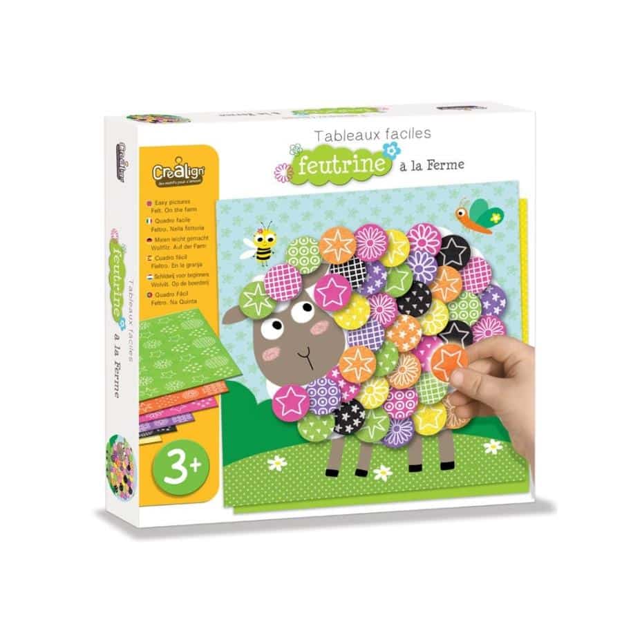 Erstellen Sie mit den neuen Crealign Filzstickern Auf dem Bauernhof kunstvolle Reliefgemälde! Kinder können ihre kreative Seele entfalten, indem sie Farben und Muster miteinander mischen. Tauchen Sie ein in die Welt des Bauernhofs und lassen Sie Ihre Fantasie aufblühen.