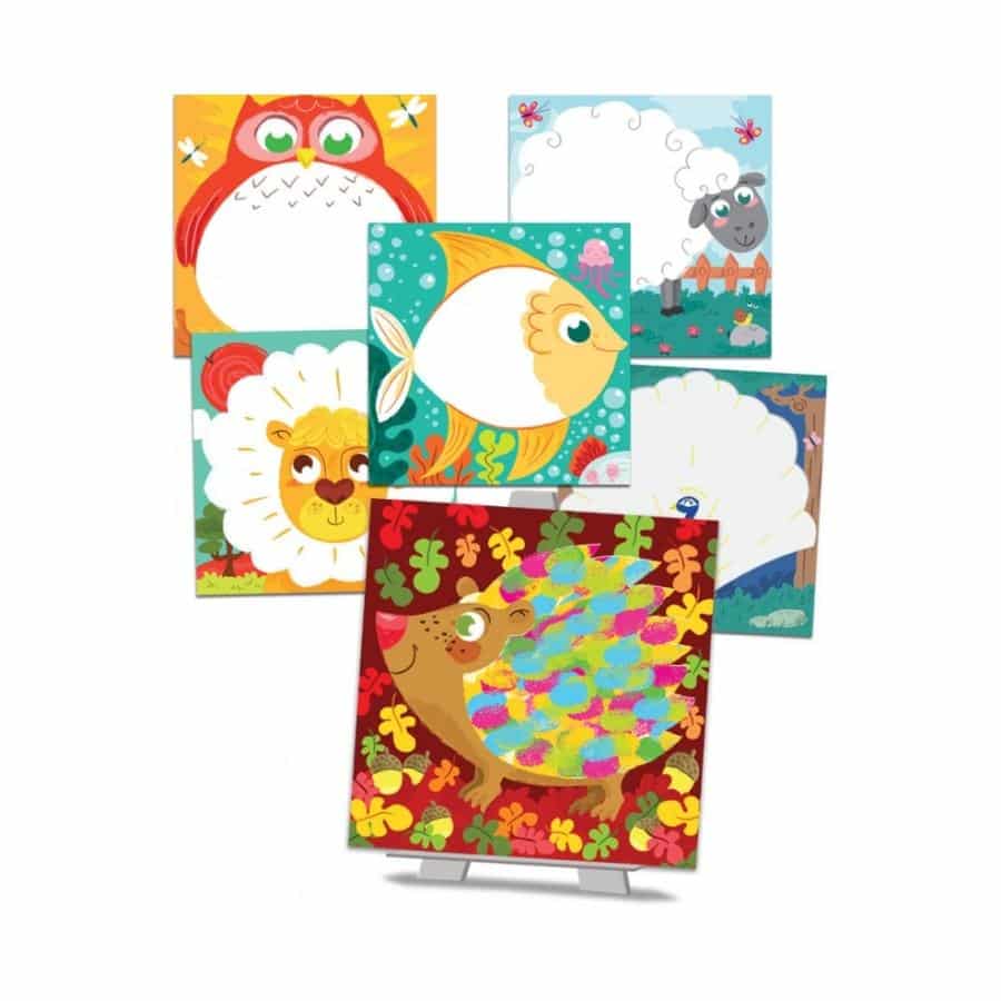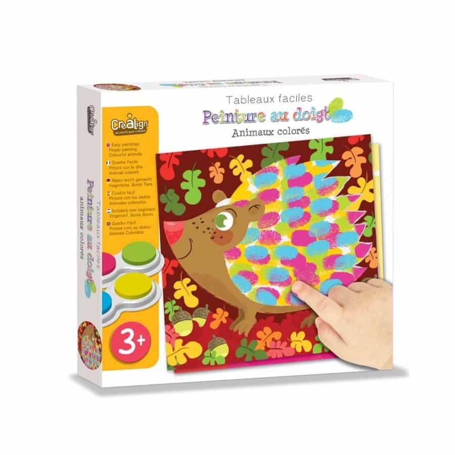 Eine Schachtel, mit der Kleinkinder leicht mit den Fingern malen können. Sobald Sie fertig sind, können Sie sie auf der schönen Staffelei ausstellen. Die Farbe ist abwaschbar und verläuft nicht.