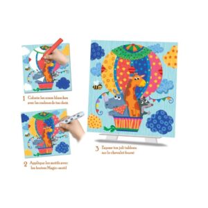 Zum Zusammenbauen und Beleben der Tiere dank der dicken und selbstklebenden vorgeschnittenen Schaumstoffstücke. Kinder können ihre Lieblingstiere nachbauen und ihre Werke dann auf der bereitgestellten Staffelei ausstellen.