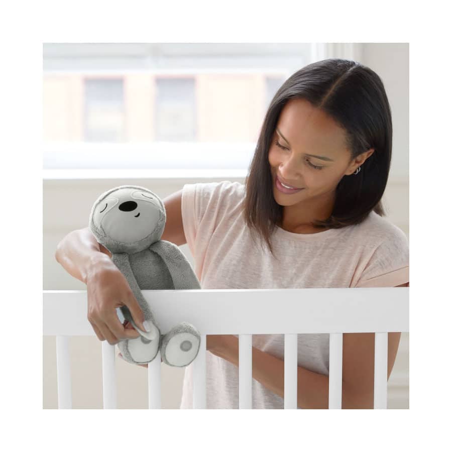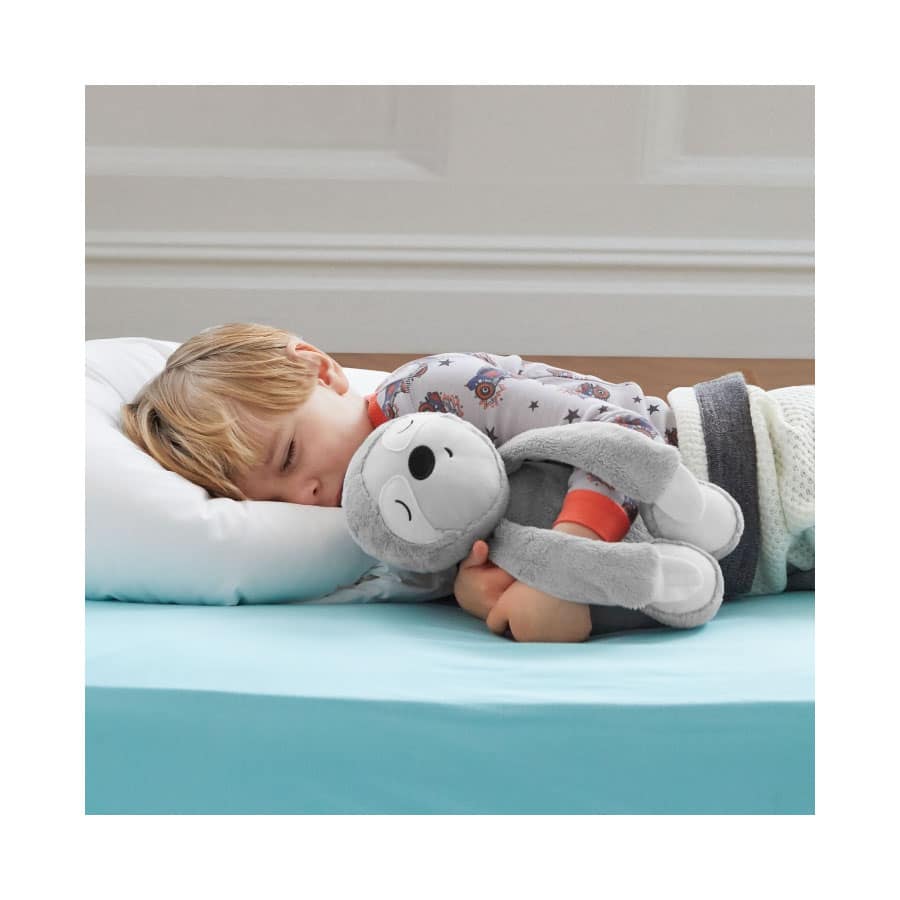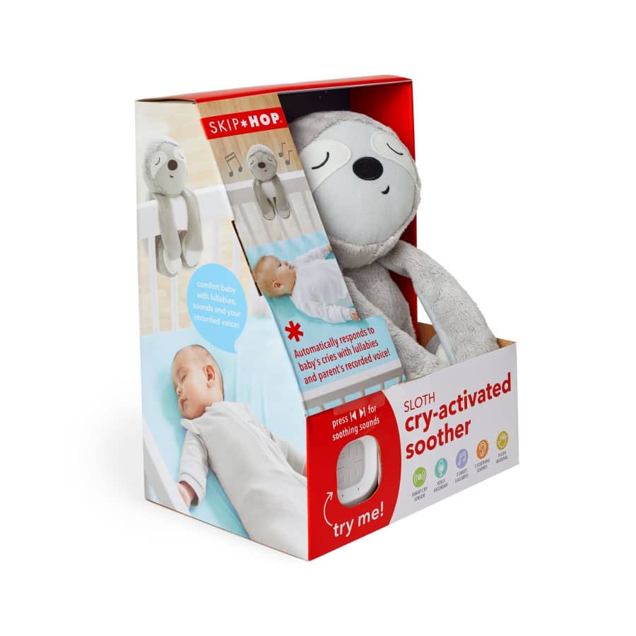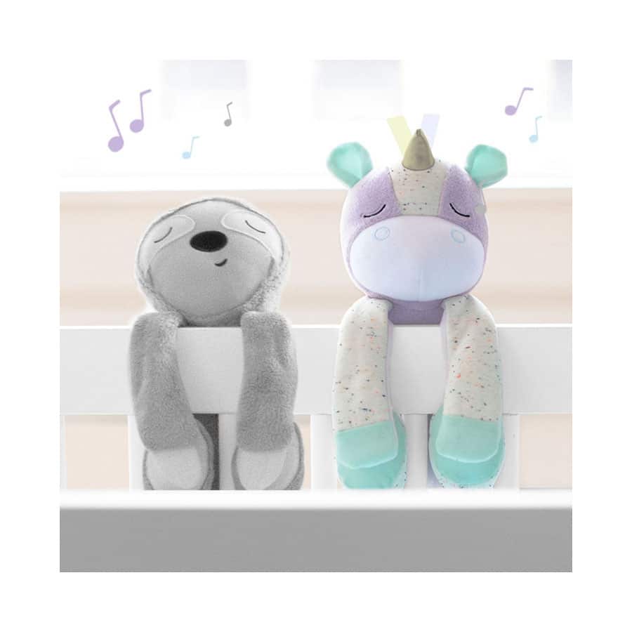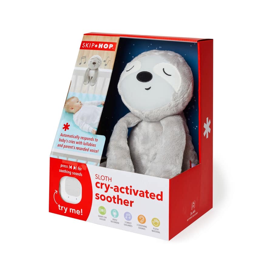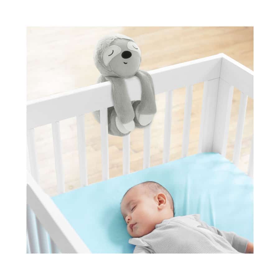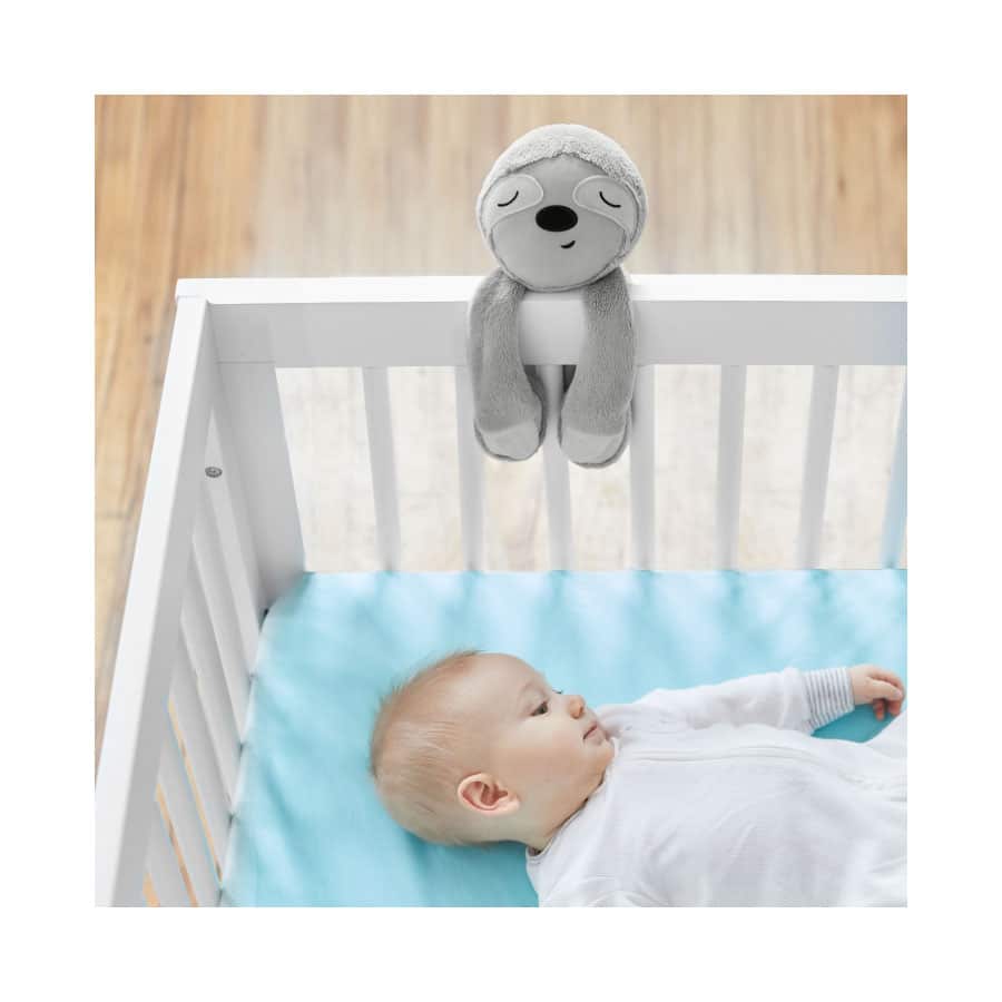 Das niedliche Faultier ist Einschlafhilfe und Babytröster in einem. Es spielt Lieder, Naturgeräusche und aufgenommene Stimmen ab – sogar mitten in der Nacht! Denn der kleine Freund verfügt über einen innovativen Sensor, der automatisch auf das Weinen des Babys reagiert und die gewünschte Melodie abspielt. Das Faultier lässt sich leicht am Gitterbett befestigen. Wenn das Baby größer wird, wird das niedliche Faultier zum kuscheligen Freund.