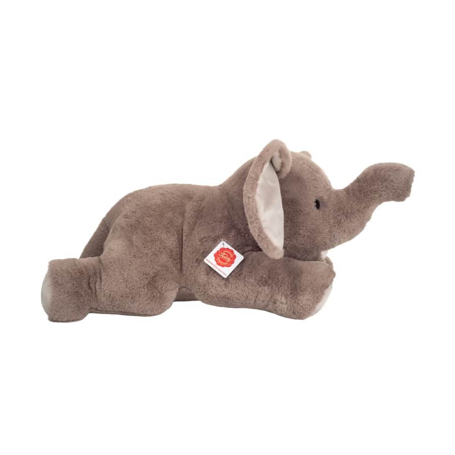 Elefant liegend 55 cm aus der Teddy Hermann® COLLECTION aus hochwertigem Plüsch gefertigt und mit weicher Polyesterwatte gefüllt.