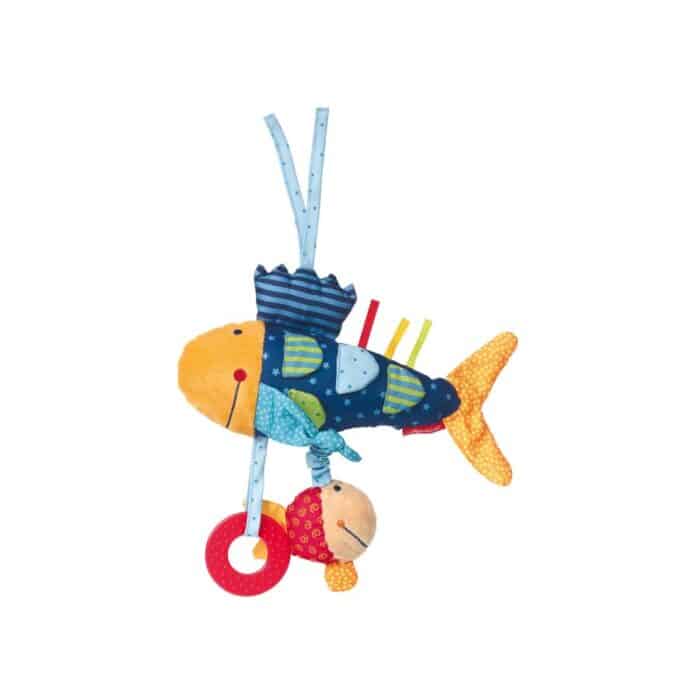Spielen, Entdecken und Lernen: Der fröhliche Aktivfisch bereitet Babys großen Spaß. Funktionen wie Beißring oder Vibrationsrassel wecken Interesse. Geräusche von Rassel, Quietsche und Knisterfolie trainieren das Gehör.