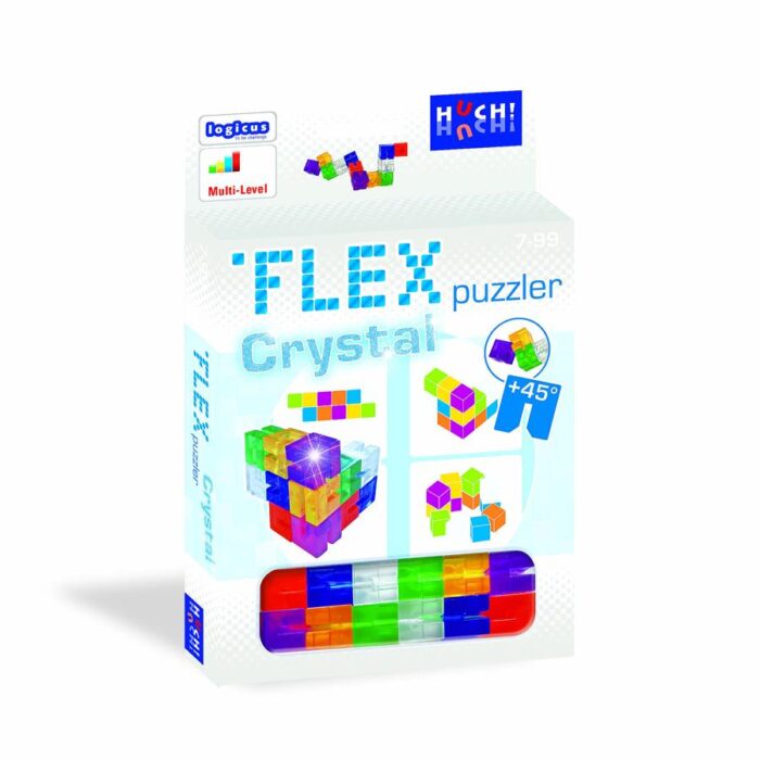 Der Flex puzzler wird durchsichtig! Die Crystal-Version bietet 80 Aufgaben in 2D und 3D in neuem, durchsichtig schimmerndem Design. Der puzzler lässt sich im 45°- und im 90°-Winkel abknicken für noch mehr Abwechslung bei den Aufgaben. Welche Knick-Kombination ist die richtige? Enthält Zusatzaufgaben, die in Kombination mit dem Flex puzzler, dem Flex puzzler XL und dem Flex puzzler MAX gelöst werden können.