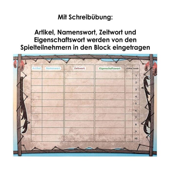 Bei HAU-TU-WIE geht es darum, dass die drei verschiedenen Wortarten durch spielerisches Lernen erkannt und geübt werden. Mit dem Zusammenbau der Tipis, genauen Hinschauen, Körpereinsatz und korrekten Schreiben kann das Spiel sehr herausfordernd sein.