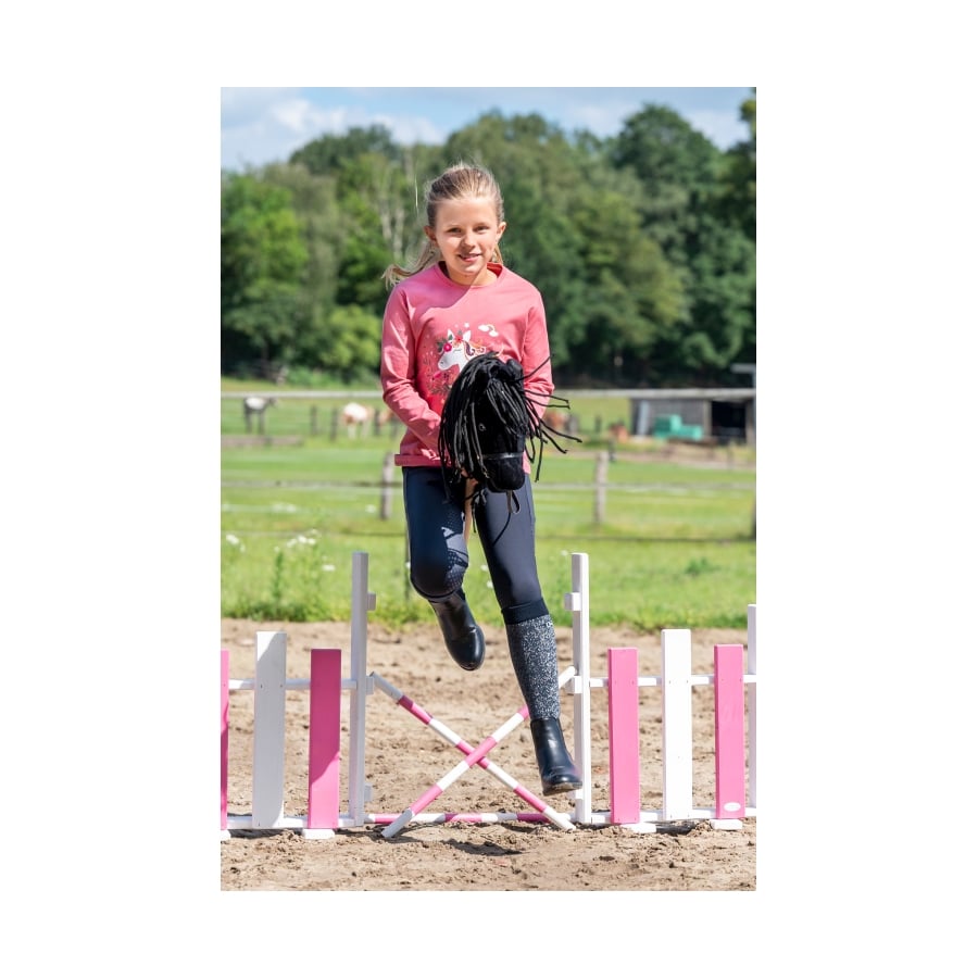 Das Hobby Horse von HKM gibt es in verschiedenen, traumhaften Fellfarben. Eine lange Mähne sorgt für den besonderen Ausdruck der Pferde und eine abnehmbare Trense ist bereits mit dabei. So können kleine und große Freund:innen des neuen Trendsports Hobby Horsing gleich losreiten. Mit einem 40 cm langen Stiel aus Holz überzeugen die Pferde sowohl auf dem Dressurviereck als auch im Parcours. Passendes Zubehör, von Strick und Halfter bis hin zur Abschwitzdecke, ist separat erhältlich.
