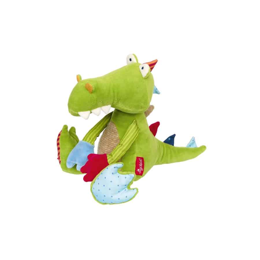 Patchwork Sweetys erobern Kinderherzen im Sturm! Die Schmusetiere mit ihrem einzigartigen Design sind unvergleichlich kuschelig und so schön bunt wie Kinder es eben lieben! Das Markenzeichen der außergewöhnlichen Kuscheltiere: Farbenfroher Materialmix, bunte Streifen und tolle Muster kombiniert mit hochwertigem und wunderbar weichem Plüsch. Umarmen, schmusen, hinter sich herziehen, überall hin mitnehmen, drücken, streicheln, Geheimnisse erzählen, Abenteuer erleben? – das Sweety Krokodil macht all das bedenkenlos mit. Der Grüne Microplüsch, der Bauch aus Strickplüsch, die witzigen bunten Zacken und die großen farbigen Hände und Füße verleihen dem ausgefallenen Spiel- und Schmusetier eine ganz besondere Haptik und Optik. Das farbenfrohe und kindgerechte Design macht das Schmuse-Krokodil zu einem perfekten Begleiter, Tröster und Spielgefährten für Jungen und Mädchen gleichermaßen. Die langen Arme und großen F??e geben dem Stofftier den typischen sigikid Schlenker-Look und bieten Babys gute Greifmöglichkeiten. Es ist weich mit hygienischer Polyesterwatte gefüllt und im Po trägt es ein wenig Kunststoffgranulat? dadurch kann das Krokodil prima sitzen. Das Kunststoffgranulat ist in ein zusätzliches Baumwollsöckchen eingenäht? so bleiben die Kügelchen garantiert an Ort und Stelle. Die schwarzen Augen sind gestickt, die gefährlich aussehenden Zähne aus softem Microplüsch gefertigt. Das Plüschtier ist problemlos bei 30C in der Waschmaschine waschbar und hält auch häufiger Wäsche stand. Das außergewöhnliche Patchwork-Kuscheltier mit einer Größe von ca. 32 cm ist für Babys und Kinder ab der Geburt geeignet – es ist somit ein ideales Geschenk zur Geburt oder Taufe! sigikid legt besonderen Wert auf ausgesuchte Materialien und durchdachtes Design. Durch akkreditierte Prüfinstitute finden in der Produktentwicklung und Produktion ständig Prüfungen gemäß der Spielzeugrichtlinie 2009/48/EG statt. Die Marke sigikid steht für kuschelige Produkte, die Emotionen wecken und Eltern und Kindern gleichermaßen ein gutes Gefühl vermitteln. Seit über 50 Jahren folgt sigikid einem klaren Leitsatz: FIRST CLASS FOR KIDS! Wir machen die Welt für Familien von Anfang an kuscheliger und bunter.