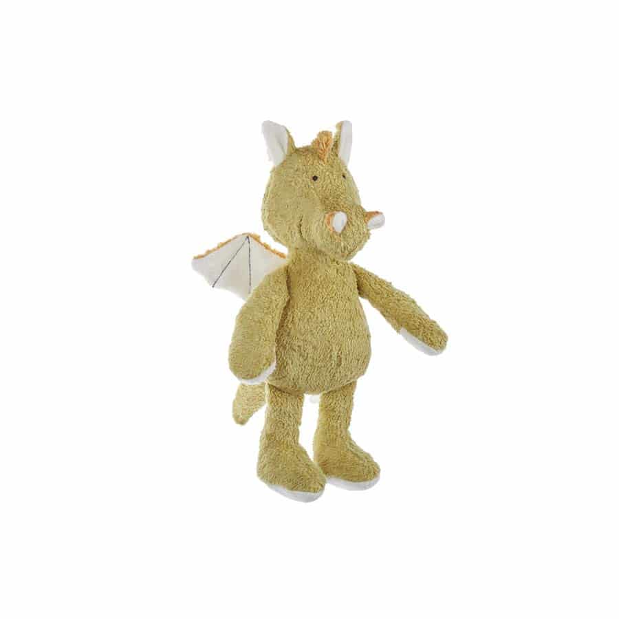 Aus den Märchenbüchern fliegt der freundliche Kuschel-Drache direkt ins Kinderzimmer. Märchenhaft freundlich zur Umwelt ist er auch, denn er besteht aus k.b.a. Baumwolle mit Schurwollfüllung. Ganz stilecht (und so niedlich!) sind seine Nüstern, Flügel und Rückenzacken. Ein treuer Begleiter durch die Kindheit, den Du getrost Deinem Kind von Anfang an ans Herz legen kannst.