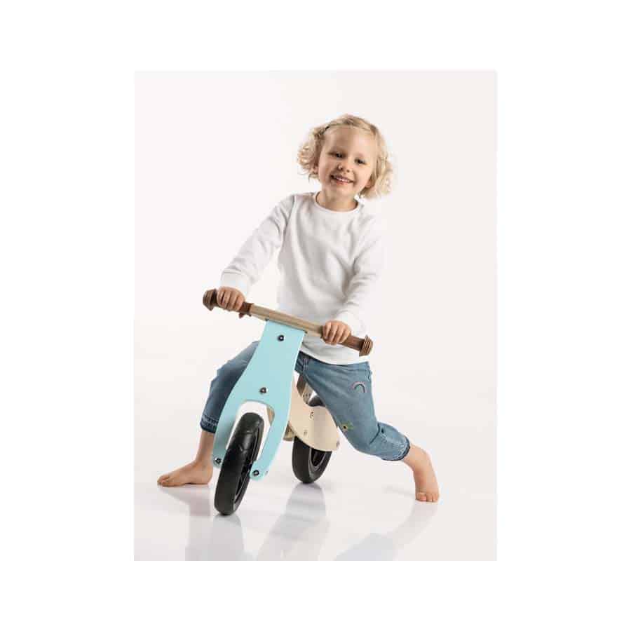 Cool und sicher! Dieses leichte, mitwachsende Lauflern-Trike aus Holz passt sich mit 3-fach höhenverstellbarem Sattel und 3-fach verstellbarem Sitzabstand perfekt ans Kind an! Für Fahranfänger ist die sichere, dreirädrige Variante mit zwei Hinterrädern ideal – wenn Lernfortschritt und Gleichgewicht es erlauben, wird es zum klassischen Laufrad umgebaut! Der Lenker mit Einschlagsbegrenzung bietet ein Plus an Sicherheit! In der abnehmbaren Lenkertasche finden Lieblingsspielzeug & Co. Platz. Gummigriffe, unkaputtbare EVA-Softbereifung und der weiche Sitz sorgen für Fahrkomfort. Erst dreirädrig, dann zweirädrig! Das ist die perfekte Vorbereitung auf das Fahrradfahren ohne Stützräder. Laufräder und Trikes schulen wie kein anderes Kinderfahrzeug Motorik, Gleichgewicht und Koordination – und das ganz individuell! Der Rahmen ist in zwei Varianten montierbar.