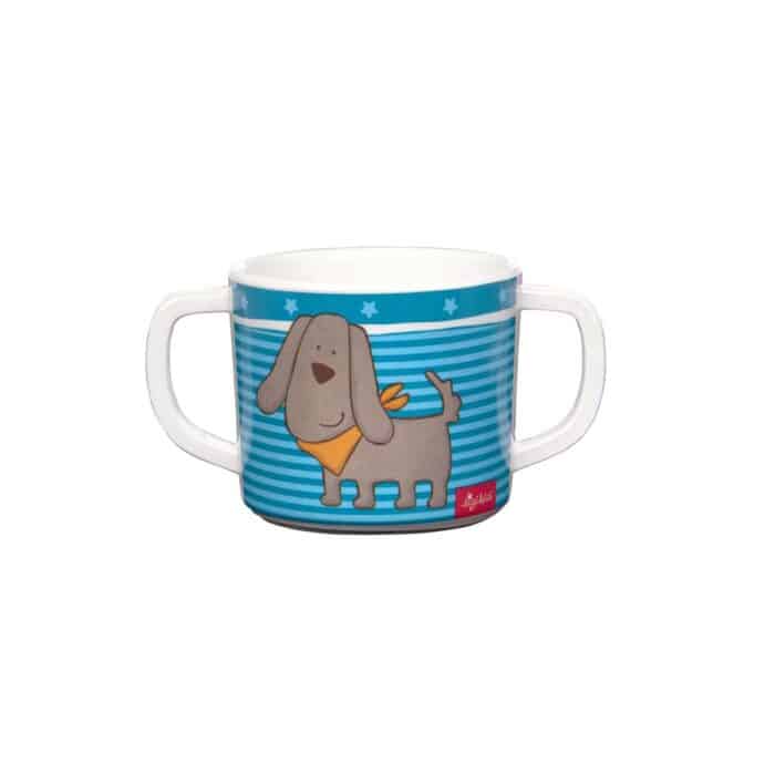 Die Glücksmomente des Alltags genießen, kuscheln, fröhlich sein – mit HÜGGE HUG, dem kuscheligen Hund mit den flauschigen Ohren und der trendigen Denim Optik geht das ganz leicht. Vom Schnuffeltuch über die Spieluhr bis hin zum Kuschelkissen finden sich alle Artikel rund um die Bedürfnisse von Babys und Kleinkindern in dieser Geschenk-Serie ein. Die Melamin Tasse mit dem Hündchen und dem ozeanblauen Design hat einen Durchmesser von 7,5 cm und ist besonders für Babys und Kleinkinder geeignet. Mit den zwei Griffen können schon die Kleinsten die Tasse gut und sicher greifen. Der Gummiring am Boden der Tasse macht das Geschirr rutschfest und sorgt somit für guten Halt auf dem Tisch. Das Baby-Geschirr besteht zu 100% aus Melamin, ist für Lebensmittelkontakt geeignet, wurde nach dem Lebensmittel- und Bedarfsgegenständegesetz (kurz: LFGB) geprüft und ist selbstverständlich BPA-frei. Es ist spülmaschinengeeignet, aber ACHTUNG! es ist nicht für die Mikrowelle geeignet. Melamingeschirr darf nicht über 70°C erhitzt werden. Warme Getränke bitte erst abkühlen lassen und niemals über 70 °C heiß einfüllen. Melamin ist generell sehr robust, aber nicht unzerbrechlich. sigikid legt besonderen Wert auf ausgesuchte Materialien und durchdachtes Design. Durch akkreditierte Prüfinstitute finden in der Produktentwicklung und Produktion ständig Prüfungen nach den vorgeschriebenen Normen statt. Die Marke sigikid steht für kindgerechte Produkte, die Emotionen wecken und Eltern und Kindern gleichermaßen ein gutes Gefühl vermitteln. Seit über 50 Jahren folgt sigikid einem klaren Leitsatz: FIRST CLASS FOR KIDS! Wir machen die Welt von Familien von Anfang an kuscheliger und bunter.