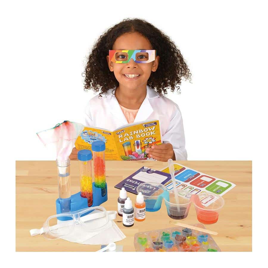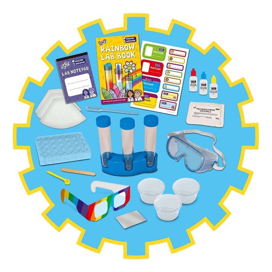 Erforsche die faszinierende Welt der Farben und entdecke, wie Regenbögen entstehen. Dieses spannende Set für junge Forscher enthält ein farbiges Buch mit 12 lustigen Experimenten. Experimentiere mit Farbmischungen und kreiere fantastische, geleeartige, kleine Kristalle in unzähligen Farben. Erzeuge einen Regenbogen im Reagenzglas und schaue die Welt durch eine Diffraktionsbrille an.