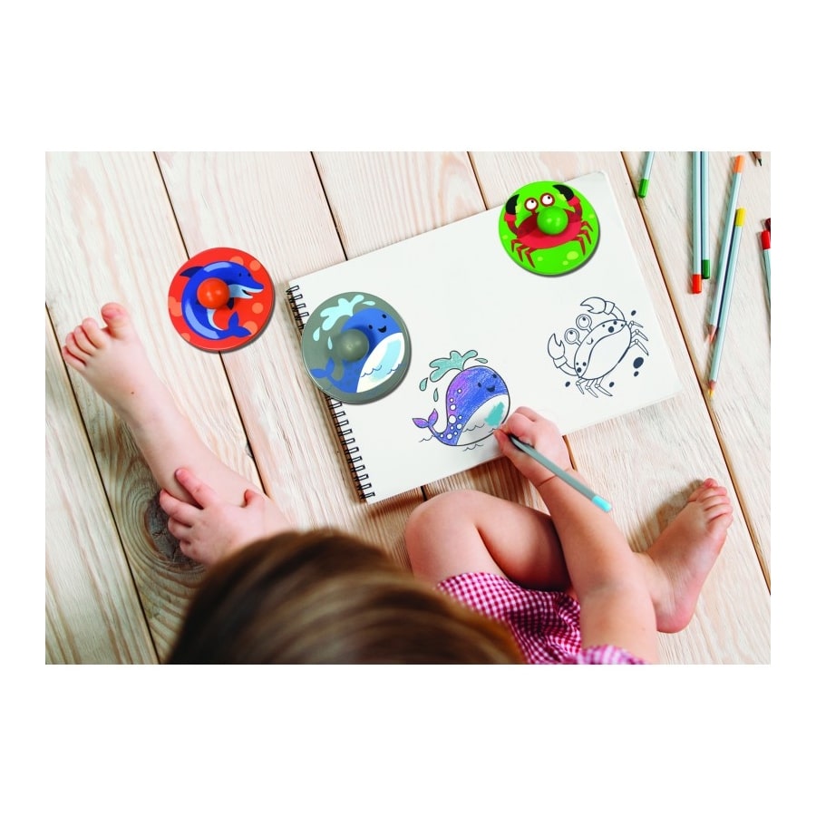 Eine Reihe von Ganzholzstempeln, um Ihre eigenen Szenen zu erstellen! Dank des großen Griffs, der speziell für eine einfache Handhabung entwickelt wurde, werden kleine Kinder es lieben, schöne Zeichnungen zu machen. 100% waschbare und ungiftige Tinte! Riesige Stempelsets: Ganzholzstempel. Ihr Griff bietet einen sehr guten Halt, um jedes Mal erfolgreiche Drucke zu machen. Kann dank ihrer Größe leicht eingefärbt werden.