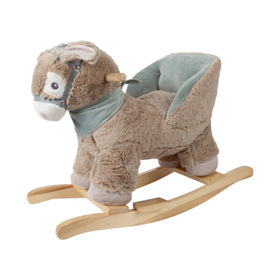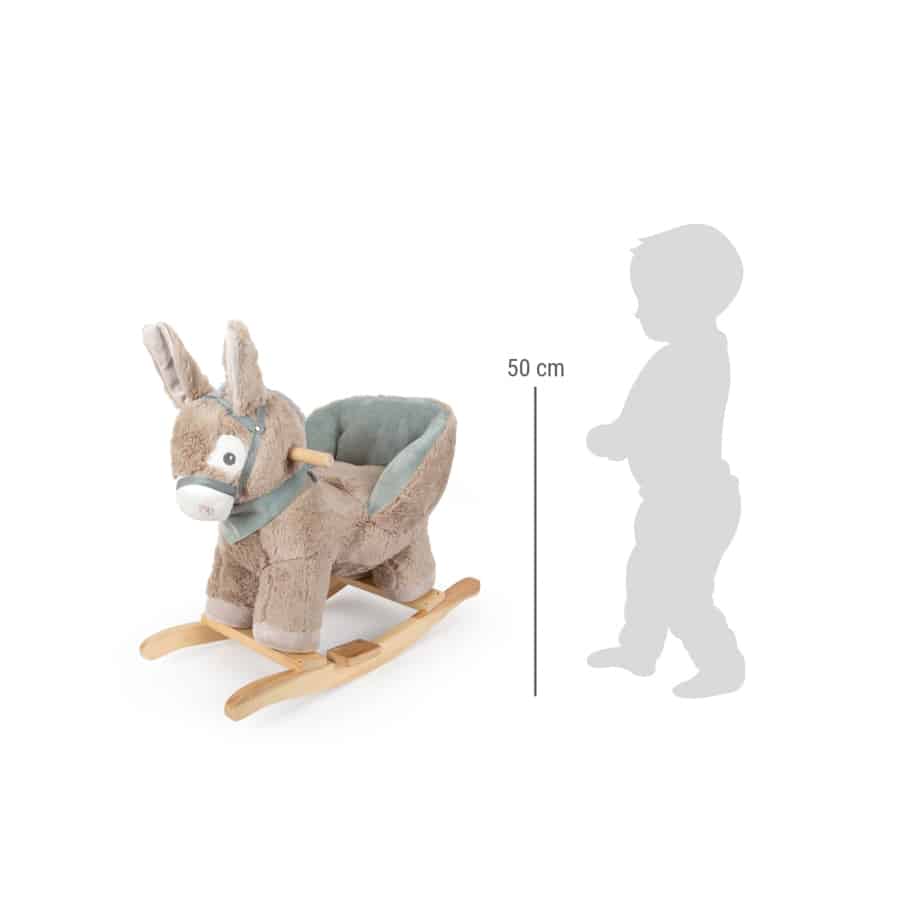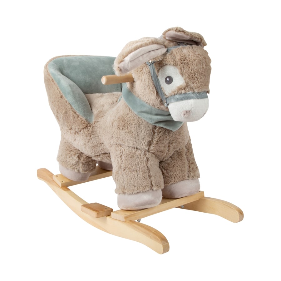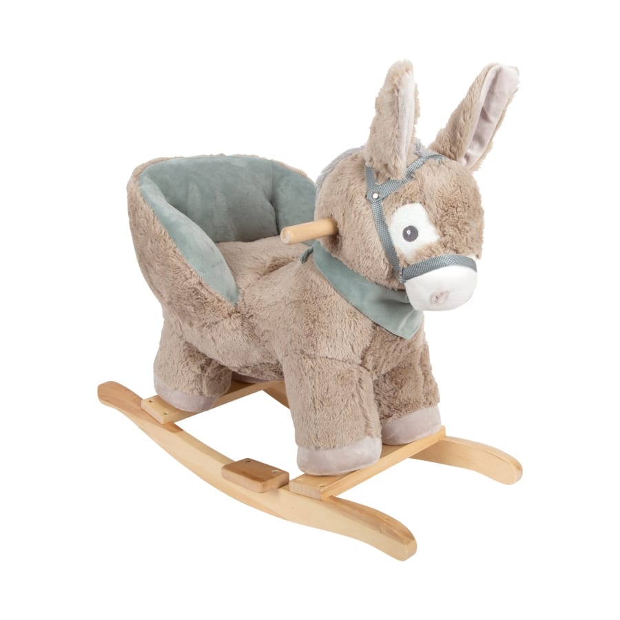 Kuschelweich und bequem! Dieser Schaukelesel aus Plüsch ist mit seiner stabilen Holzkonstruktion ein treuer Begleiter, der durch sein weiches Fell und das freundliche Gesicht zum Kuscheln einlädt. Der gepolsterte Sitz in Sesselform mit Rückenlehne sorgt bei kleinen Reitern für sicheren Halt. Zum Festhalten dienen die stabilen, runden Griffe aus Holz. Mit Halfter und Halstuch. Die Alternative zum Schaukelpferd für alle Esel-Freunde! Dieses Schaukeltier ist ein Spaßgarant, der wilde Ritte im Kinderzimmer verspricht! Trainiert beim Schaukeln Körperbeherrschung und regt zum ersten Rollenspiel an.