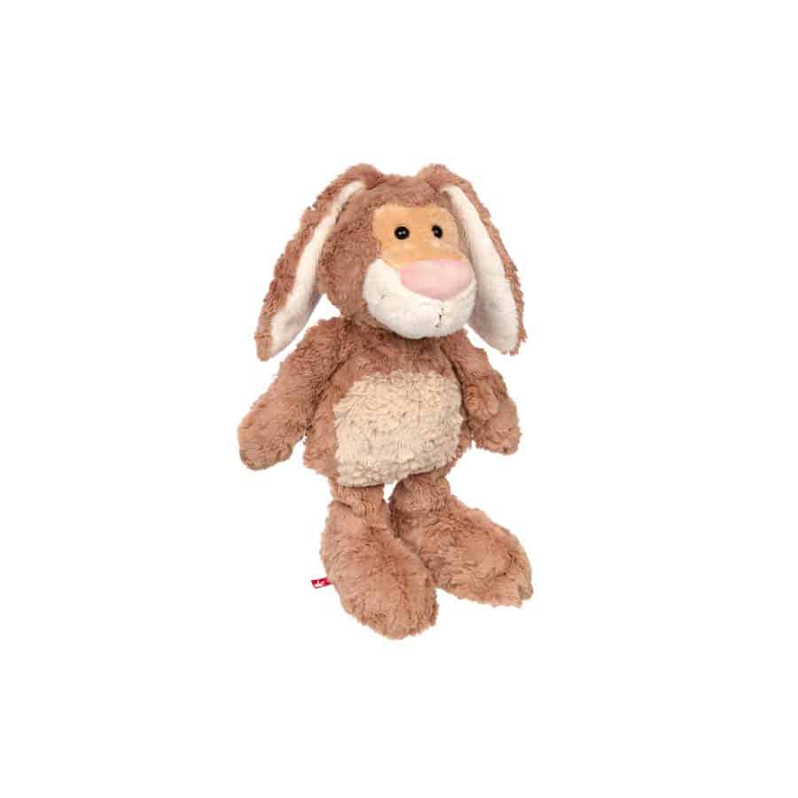 Die sigikid Sweety Plüschtiere sind soooo samtweich und wolkenzart; sie verführen zum Streicheln und Hineinkuscheln! Der Schlenker-Hase mit braunem Wuschelfell, rosa Näschen und dunklen treu schauenden Augen ist der ideale Begleiter und Spielgefährte für Kinder jeden Alters. Die langen Ohren eignen sich ideal zum Greifen und Hinterherziehen; so kann das Kind seinen neuen besten Freund stets bei sich haben? ob im Bett zum Schlafen, zu Hause beim Spielen oder unterwegs! Das etwa 29 cm große Schmusetier ist weich mit hygienischer Polyesterwatte gefüllt. Im Po, in den Ärmchen und in den Füssen trägt es ein wenig Kunststoffgranulat? dadurch kann der Hase prima sitzen und lässt die Beine fröhlich baumeln. Das Kunststoffgranulat ist in ein zusätzliches Baumwollsöckchen eingenäht? so bleiben die Kügelchen garantiert an Ort und Stelle. Und wenn das Häschen bei seinen Abenteuern einmal dreckig wird? kein Problem: Das Kuscheltier ist problemlos bei 30?C in der Waschmaschine waschbar und hält auch häufiger Wäsche stand. Sicherheit wird bei sigikid großgeschrieben. Die Kunststoffaugen werden daher mit Sperrscheiben auf der Rückseite fixiert. Um die Befestigung zu bestätigen, wird ein Zugtest durchgeführt. Dabei wird per Zuggerät für 10 Sekunden gezogen und somit die korrekte Fixierung bestätigt. sigikid legt besonderen Wert auf ausgesuchte Materialien und durchdachtes Design. Durch akkreditierte Prüfinstitute finden in der Produktentwicklung und Produktion ständig Prüfungen gemäß der Spielzeugrichtlinie 2009/48/EG statt. So bleibt sigikid seinem Leitsatz treu: FIRST CLASS FOR KIDS! Wir machen die Welt für Familien von Anfang an kuscheliger und bunter.
