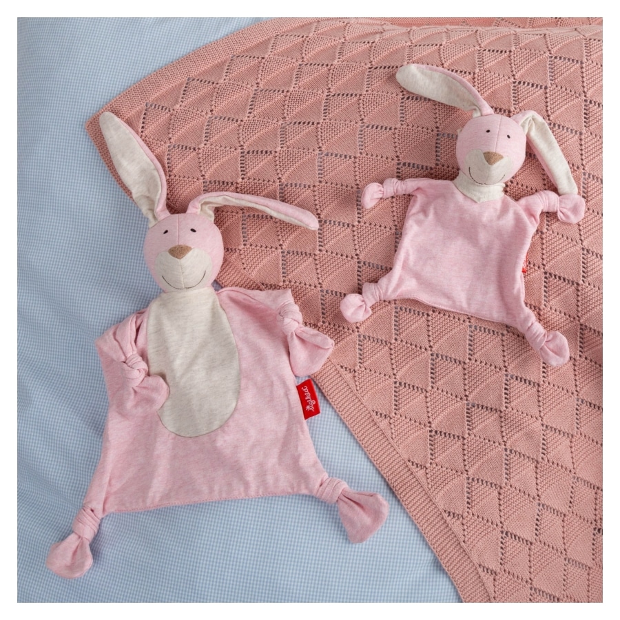 sigikid yellow – the sunshine collection – steht für eine moderne und harmonische Farbzusammenstellung. Die Kollektion ist typisch sigikid: positiv und voller Lebensfreude! Das anschmiegsame Schnuffeltuch Hase ist ein erster Freund und unentbehrlicher Begleiter – ob unterwegs im Kinderwagen oder zu Hause im Kinderzimmer – oft bis über das Babyalter hinaus! Die geknoteten Enden sorgen für wunderbare Greifmöglichkeiten und laden zum Nuckeln, Kuscheln und Schmusen ein. Der weiche, anschmiegsame Single Jersey Stoff aus Bio-Baumwolle verleiht dem rosafarbenen Hasen seine einzigartige Haptik und animiert das Baby, das Tuch mit allen Sinnen zu erkunden. Der Kopf des Häschens ist weich mit hygienischer Polyesterwatte gefüllt, sein freundliches Gesicht und die Augen sind gestickt. Das hochwertige Kuscheltuch hält auch häufiger Wäsche bei 30° C in der Waschmaschine stand.