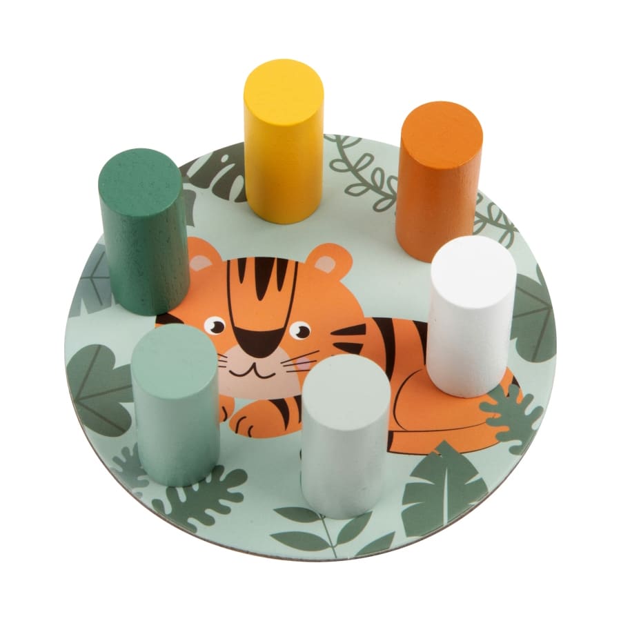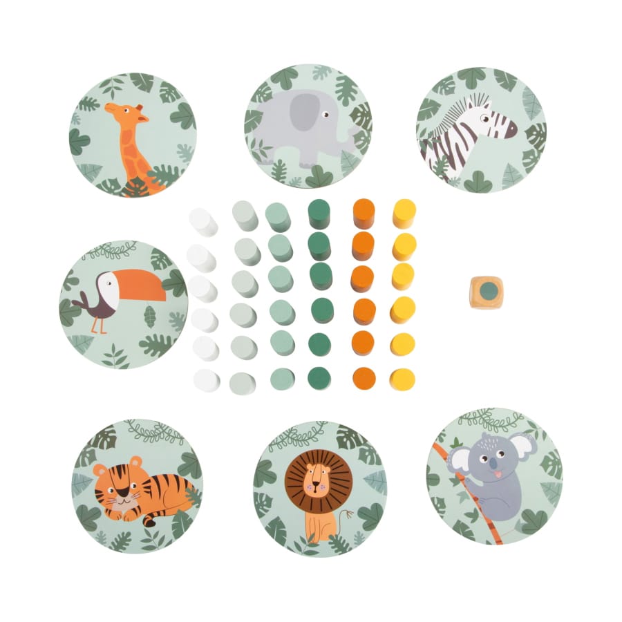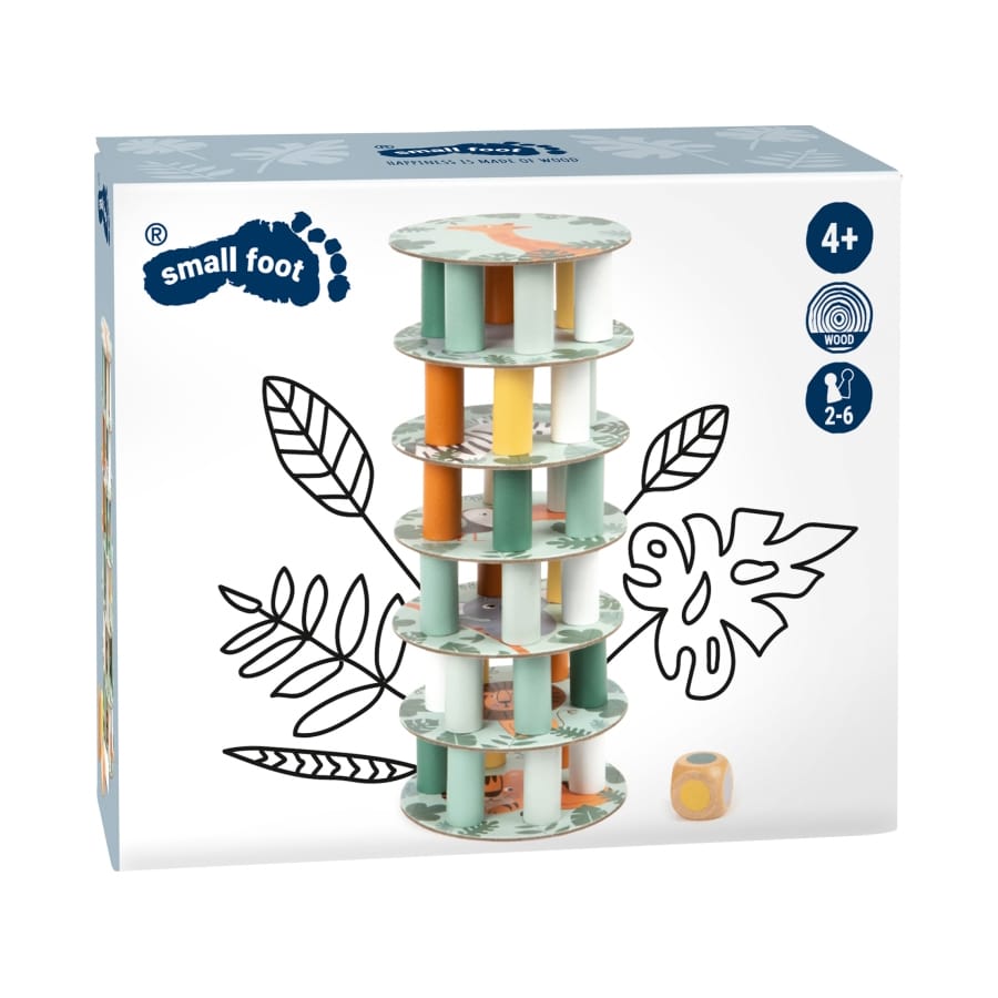Safari-Tiere wollen hoch hinaus! Bei dieser Variante des beliebten Wackelturm-Kultspiels ist spannender Spielspaß und Nervenkitzel garantiert. Zunächst wird ein Turm aus Holzsteinen und Böden gestapelt, dessen „Säulen“ anschließend mit ruhiger Hand reihum herausgenommen werden müssen – ohne dass der Turm einstürzt! Der Farbwürfel gibt an, welche Säule gezogen werden muss. Ein klassisches Gesellschaftsspiel im modernen Safari-Look, das die ganze Familie begeistert und dank niedlicher Motive aus der Tierwelt für Kinder besonders ansprechend ist. Ganz nebenbei wird spielerisch Konzentration, Motorik und Hand-Augen-Koordination trainiert. Wer beweist eine ruhige Hand?