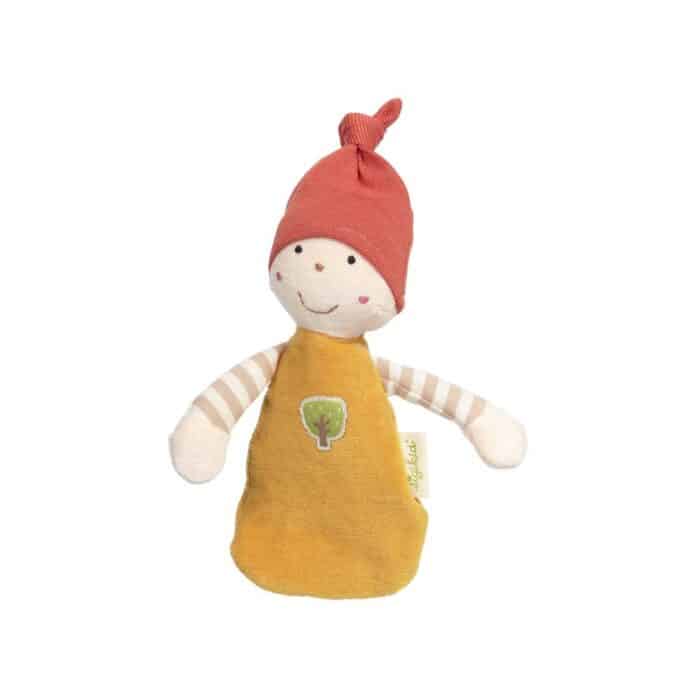 NATÜRLICH – NACHHALTIG – FAIR – ÖKOLOGISCH – BIO: Nachhaltige Produkte, fair und verantwortlich in Europa hergestellt, natürliche Materialien aus kontrolliert biologischem Anbau und ein ästhetisch anspruchsvolles Design sind die Grundlagen, auf die sigikid bei der Kreation der Serie GREEN Wert legt. Alle eingesetzten Stoffe aus dieser Serie sind zu 100 % organisch – die Oberstoffe aus kontrolliert biologischem Anbau (kbA), als Füllmaterial wird Wolle vom Schaf verwendet. Die Farben und Veredelungen, die bei der GREEN-Kollektion Anwendung finden, sind zudem ökologisch und gesundheitlich unbedenklich. Der 20 cm große Kuschelwichtel ist Püppchen und Schnuffeltuch zugleich. Mit dem niedlichen anschmiegsamen Wichtel lässt es sich wunderbar schmusen, er dient darüber hinaus als verlässlicher Tröster und ist das perfekte Spielzeug für die ersten Wachphasen Ihres kleinen Lieblings und später auch für kleine Rollenspiele. Das Püppchen ist bewusst so dimensioniert, dass bereits kleine Babyhände es sehr gut greifen und festhalten können. Das Stoffpüppchen ist bereit vom Baby mit allen Sinnen erforscht zu werden. Die langen beige-weiß geringelten Ärmchen laden es zum Nuckeln ein. Die orangefarbene Mütze ist fest fixiert, so dass kein Verschlucken möglich ist. Das Gesicht des freundlichen Wichtels ist liebevoll gestickt und mit Wollkügelchen gefüllt. Der goldgelbe Körper ist nur in der oberen Hälfte mit Wolle gefüllt, so dass im unteren Teil der Kuscheltuch-Charakter bleibt. Die verschiedenen weichen Oberstoffe – allesamt aus Bio-Baumwolle – machen das Kuscheltuch so schön anschmiegsam und sorgen für eine angenehme und interessante Haptik. Alle Materialien sind hochwertig verarbeitet und halten auch häufiger Wäsche bei 30° im Wollwaschgang der Waschmaschine stand. Empfohlen wird der Kuschelwichtel für Babys und Kleinkinder zwischen 3 und 36 Monaten. Er eignet sich daher auch hervorragend als Geschenk zur Geburt oder Taufe. sigikid legt besonderen Wert auf ausgesuchte Materialien und durchdachtes Design. Durch akkreditierte Prüfinstitute finden in der Produktentwicklung und Produktion ständig Prüfungen gemäß der Spielzeugrichtlinie 2009/48/EG statt. Die Marke sigikid steht für kuschelige Produkte, die Emotionen wecken und Eltern und Kindern gleichermaßen ein gutes Gefühl vermitteln. Seit über 50 Jahren folgt sigikid einem klaren Leitsatz: FIRST CLASS FOR KIDS! Wir machen die Welt von Familien von Anfang an kuscheliger und bunter.